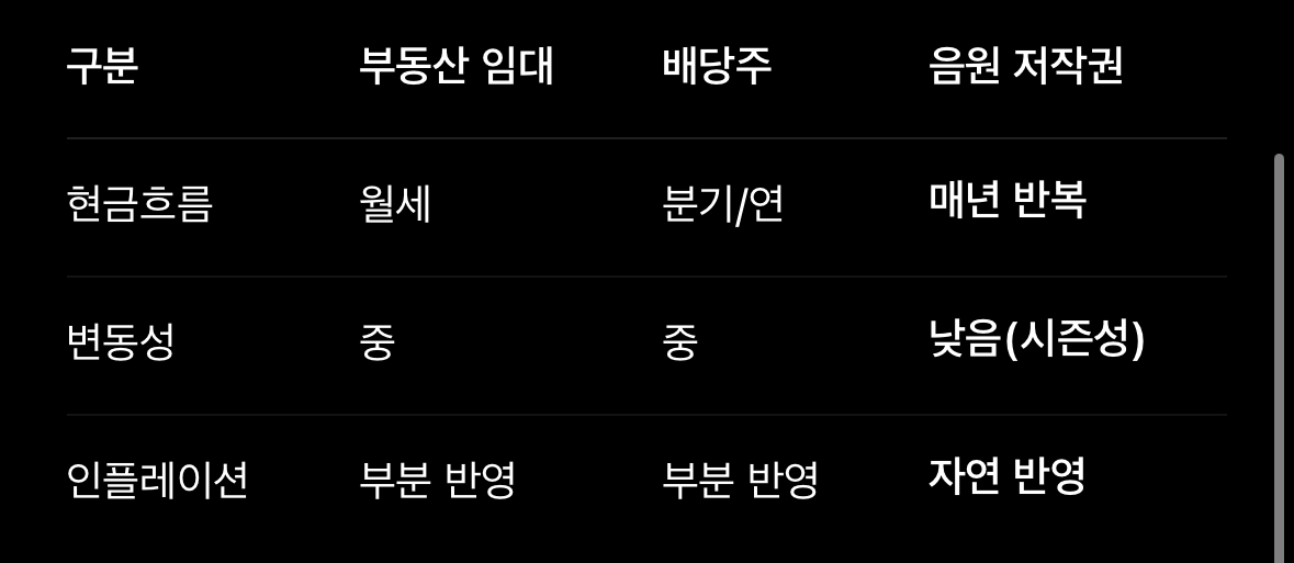 5️⃣ 투자 관점에서 보면? ‘음원 = 배당자산’