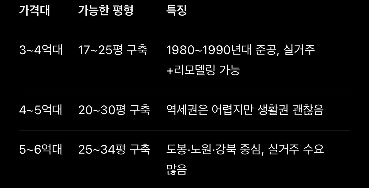 A. 실거주라면 정말 선택폭 넓어요. 특히 노원·강북 라인은 편의시설이 좋아서 오래 살기 좋아요.