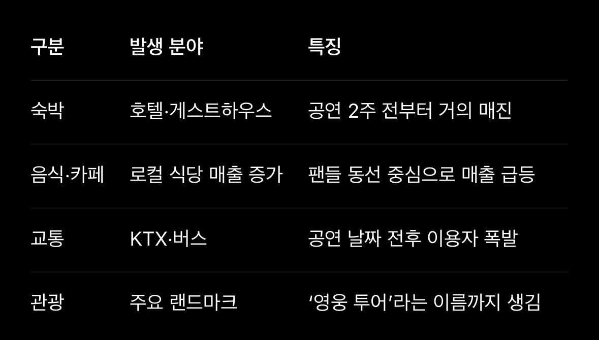 • 공연 개최 = 지역 숙박·외식·교통 매출 폭증