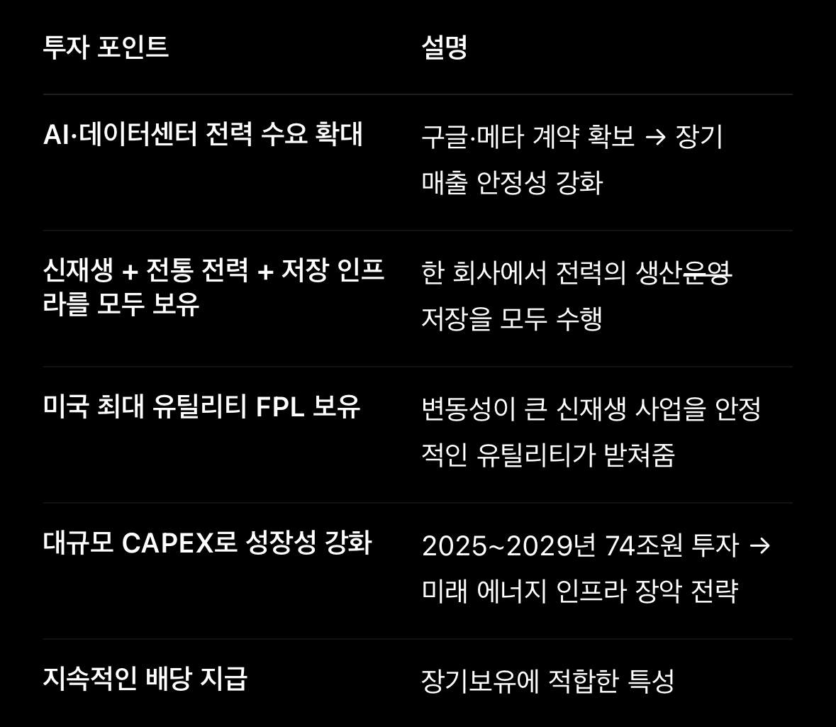 📌 넥스트에라에너지(NextEra Energy) 투자포인트 정리
